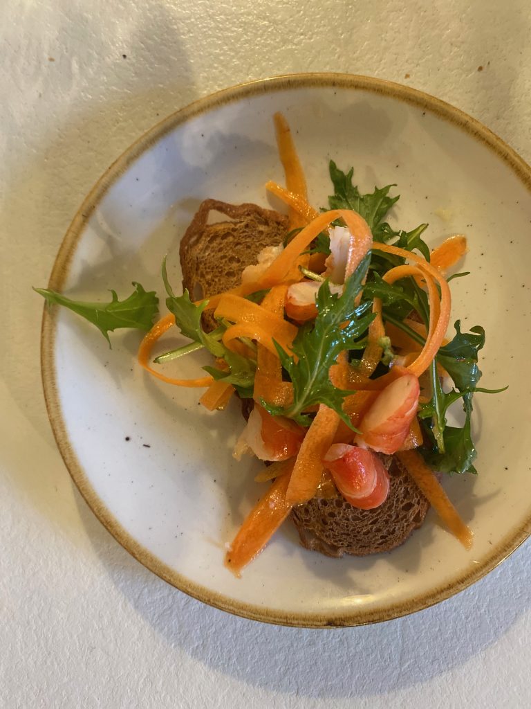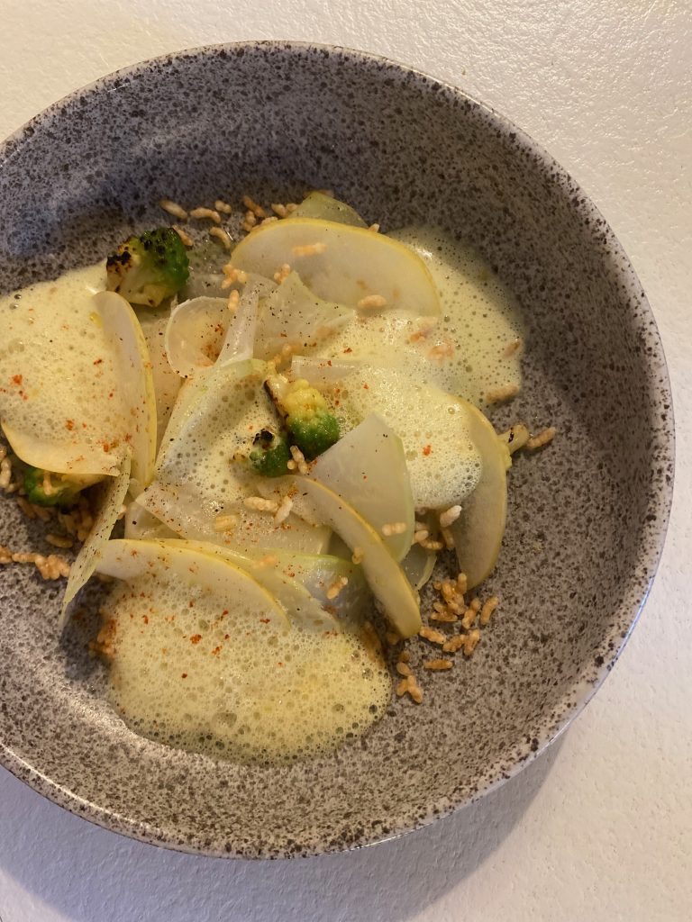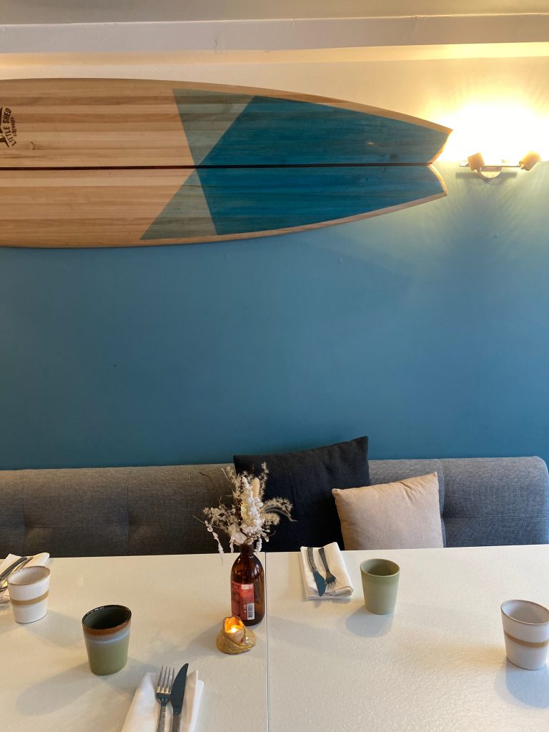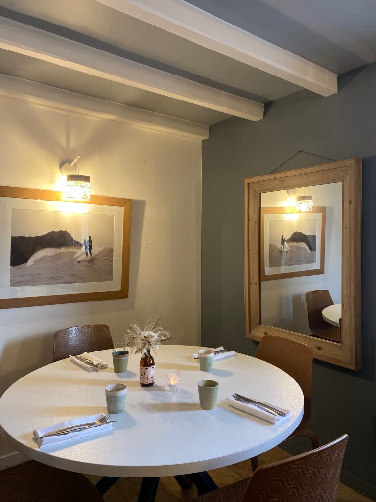 Après un parcours dans les palaces et les restaurants étoilés, le jeune couple Julie Montorcier et Valentin Frezier ont ouvert Mahaïna dans une maison basque à colombages.Empreinte de culture surf, la salle au design moderne et épuré se tient à quelques minutes de la plage. Outre les charcuteries signées Manex, on commande un chou-rave mariné, pomme, romanesco, curry et riz soufflé, ou le poisson de la criée, ail noir et coques coco, le tout accompagné de jolies quilles natures. Par exemple d’un Irouléguy de Bordaxuria.