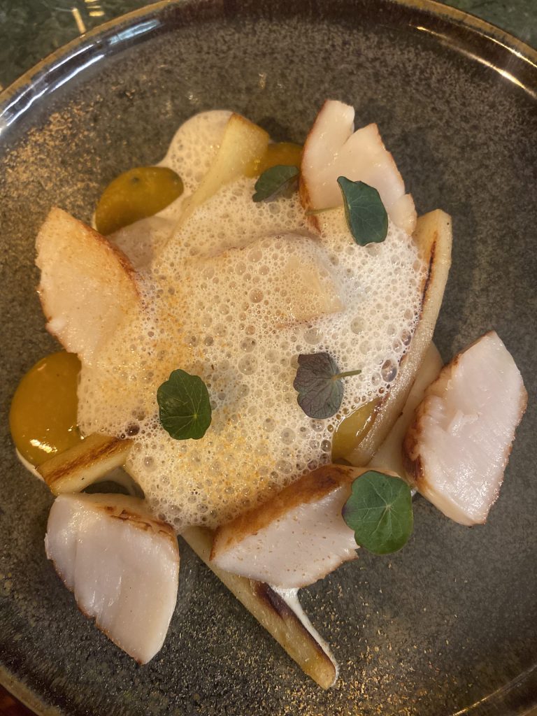 Près de la rue Mouffetard, Calice est le dernier né d’une trilogie franco-nippone : après le succès de Baillotte (VIe) et de Narro (Ve), le chef Kazuma Chikuda, rejoint par Louis Fedide, imagine une des assiettes à partager créatives. On commande un oursin, crème de carotte au gingembre et brioche au nori, une sériole à la flamme marinée aux agrumes, lait d’amande et wasabi, pour finir avec une queue de lotte cuite au bichotan, laquée au yuzu. Un régal. Jolie sélection de vins de vignerons engagés.