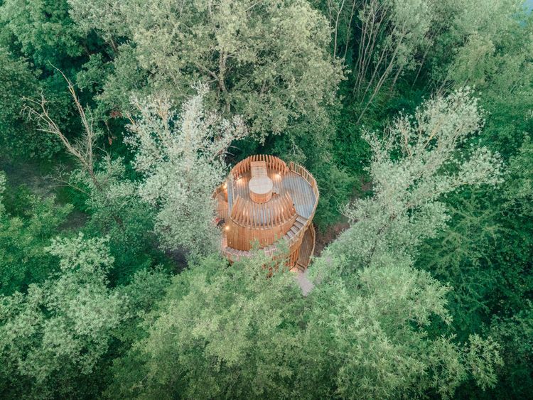 C’est depuis le toit d’une singulière cabane d’architecte – signée par l’agence parisienne AW2 – que l’on se plonge dans un bain nordique, s’immerge dans la forêt, découvre les étangs et l’avifaune qui les habite. Nouvellement déployés sur le domaine des Grands Lacs (site protégé de 150 ha à Chassey-lès-Montbozon en Franche-Comté), ces cocons en bois, totalement autonomes, ont trois niveaux : un salon à vivre de plain-pied avec la nature, une chambre-suite aménagée avec soin à partir de matériaux locaux éco-sourcés et marques françaises engagées, plus une terrasse en surplomb de l’étang, et un toit-terrasse bien-être pour vivre en parfaite symbiose avec l’environnement.