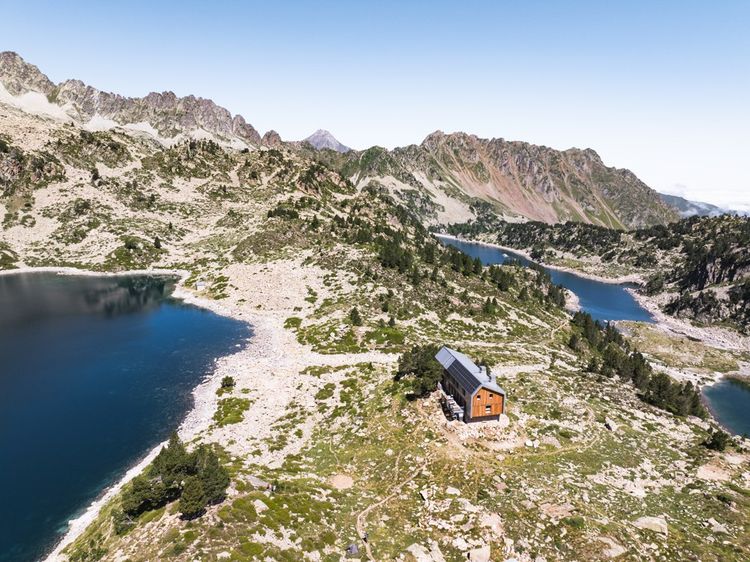 On commence par le refuge d’Aygues-Cluses (2135m) qui, d’une simple cabane aux allures d’abri de berger, s’est transformé en un nouveau refuge autonome en surplomb du lac de Madamette. Puis on rejoint le nouveau refuge de Campana de Cloutou (2225m) dont les lignes architecturales dominent le lac éponyme. On boucle le tour au refuge de l’Oule (1820m) qui offre, sur le lac de l’Oule, une table en vue tenue avec passion par le gardien du refuge.